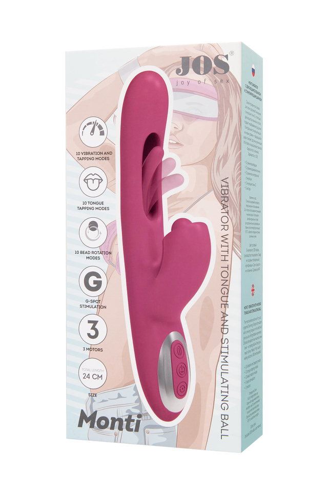 Погрузитесь в мир инновационных ощущений с вибратором PITTI от самого необыкновенного бренда JOS! Этот невероятный технологичный дизайн поднимет стимуляцию точки G на абсолютно новый уровень. Двигающийся язычок внутри вагинальной части точечно вибрирует непосредственно на зоне G, погружая вас в водоворот удовольствия. А клиторальный отросток в это время может ласкать вас вакуумными волнами воздушной пульсации. Тройное удовольствие гарантирует оргазм с максимальным уровнем экстаза. Управляйте своим наслаждением с легкостью! Три кнопки на основании вибратора контролируют каждый аспект удовольствия. Серединная кнопка включает устройство и переключает режимы основного вибратора. Кнопки ниже управляют режимами клиторального отростка. Верхняя кнопка изменяет режимы работы язычка. PITTI выполнен из высококачественного бархатистого силикона, обеспечивая максимальный комфорт. Заряжается от USB, что делает использование еще более удобным. Простое управление тремя кнопками гарантирует, что каждая функция будет под вашим контролем. Дизайн игрушки выполнен в насыщенном фиолетовом цвете с золотыми вставками. Головка погружного ствола имеет диаметр 3,3 см, а рабочая длина кролика составляет 13,5 см. Изготовленный из высококачественного бархатистого силикона, PITTI легко заряжается от USB, что делает его современным и практичным в использовании. Идеально гладкое и безопасное покрытие обеспечит вашей коже комфорт. Позаботьтесь о правильном хранении и уходе за PITTI, чтобы он всегда оставался вашим верным спутником в мире наслаждения. Используйте только водные лубриканты. После каждого использования промойте его мыльной водой и дезинфицируйте антибактериальным спреем, чтобы сохранить его гигиеничность и продлить его срок службы. Технические характеристики: 10 режимов вибрации 10 режимов вакуумной стимуляции 10 режимов работы язычка 3 мотора Стимуляция точки G Общая длина 24 см Рабочая длина 13,5 см Диаметр 3,3 см Материал - силикон, ABS-пластик Цвет - розовый