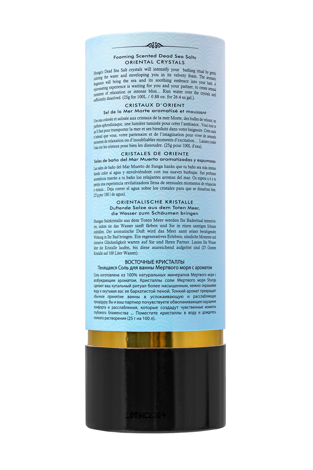 Погрузитесь в мир свежести и чувственного блаженства с солью Мертвого моря Oriental Crystals от Shunga с ароматом “Искушение океана”. Эти кристаллы превращают каждую ванну в настоящий релакс-ритуал, насыщая воду синими оттенками и окутывая тело нежной пеной. Изготовленные из 100% натуральной соли Мертвого моря, они заботятся о вашей коже, питая и увлажняя ее, а маслянистые пузырьки добавляют ощущение мягкости и комфорта. Аромат “Искушение океана” перенесет вас к бескрайним просторам свежего морского бриза, наполнив вашу ванную комнату волнующей чистотой и прохладой. Свежие нотки океана дарят спокойствие и гармонию, создавая атмосферу полной релаксации и умиротворения. Это идеальный выбор для тех, кто хочет освежиться и отвлечься от повседневных забот, ощутив на себе ласковое прикосновение моря. Кристаллы не только обогащают вашу кожу минералами, но и наполняют купание чувственной атмосферой, создавая условия для глубокого расслабления и восстановления. Подарите себе минуты уединения или разделите эти моменты с партнером, создавая волнующую и страстную атмосферу. 100% натуральная соль Мертвого моря — увлажняет и питает кожу. Аромат “Искушение океана” — свежий, бодрящий и успокаивающий. Маслянистые пузырьки делают кожу невероятно мягкой и шелковистой. Легкое окрашивание воды в голубой цвет — яркое визуальное наслаждение без следов на ванне. Превращает обычное купание в освежающий ритуал морского релакса. Идеально как для уединенных релакс-моментов, так и для чувственных ванн вдвоем. Ощутите прикосновение океанской свежести с Oriental Crystals от Shunga и позвольте себе расслабиться и восстановить силы!