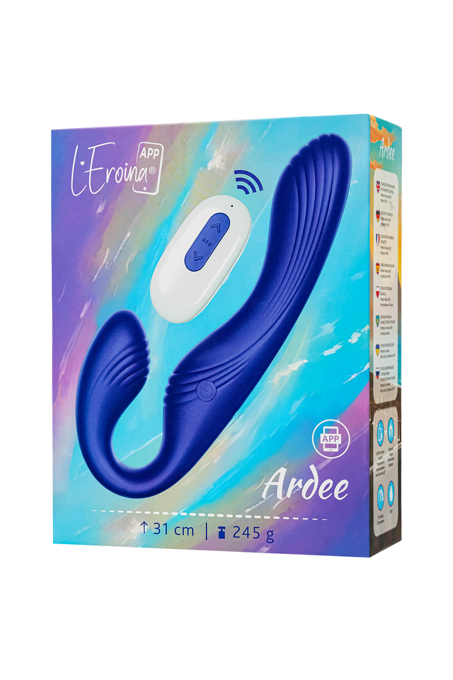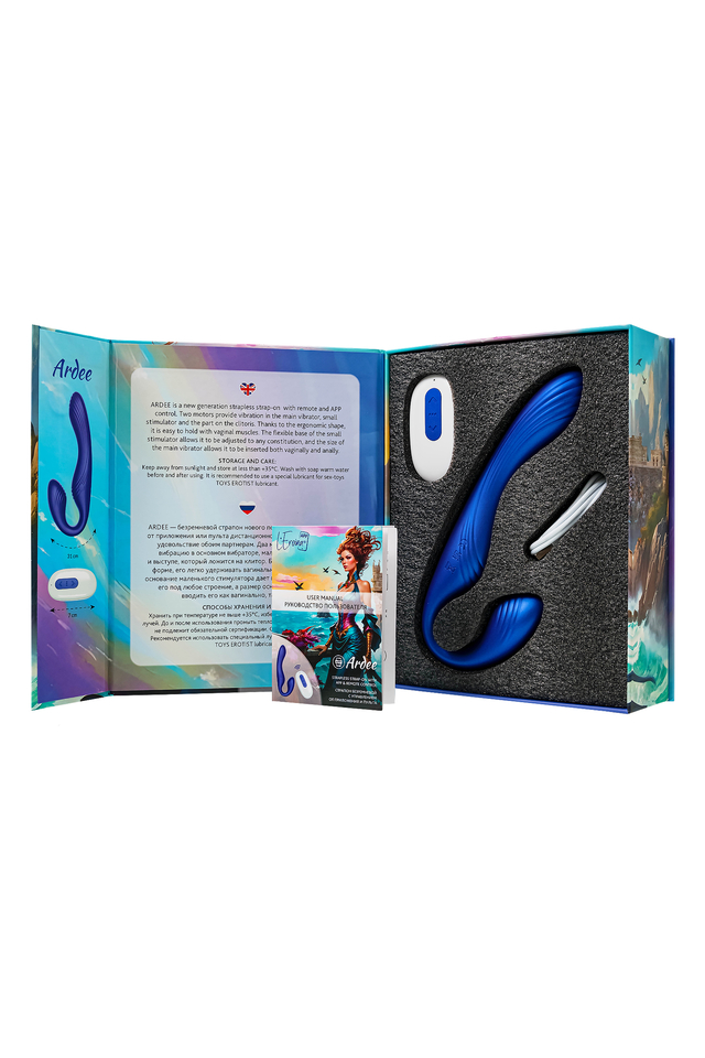 Ardee от L'Eroina — это безремневой страпон, который перевернет твои представления о совместных удовольствиях! Этот инновационный гаджет создан для смелых девушек, которые хотят радовать не только себя, но и своего партнера. Готова к двойному удовольствию? Два мощных мотора вибрируют одновременно, посылая волну наслаждения и тебе, и твоему партнеру. Цвет синий металлик делает игрушку не только красивой, но и подчеркивает ее утонченность и технологичность. Этот страпон создан для игр, где каждый из партнёров может получать удовольствие. Ты можешь использовать его как для вагинальной, так и анальной стимуляции. Маленький стимулятор идеально подстраивается под твое тело, а эргономичная форма позволяет легко удерживать Ardee вагинальными мышцами (вес игрушки всего 245 гр), так что можно забыть о ремнях и полностью погрузиться в наслаждение. Ardee управляется не только кнопками, но и через пульт или приложение, так что ты можешь легко передать контроль партнеру. Приложение добавляет интерактивности: вибрации в такт музыке, реакции на движения смартфона — все это открывает двери для новых приключений! Работа приложения осуществляется в тестовом режиме и может быть нестабильна. И если ты захочешь попробовать что-то новое, Ardee — твой верный спутник в ванной или душе, ведь он полностью водонепроницаем (IPX7). С магнитной зарядкой тебе не придётся беспокоиться о том, чтобы заряжать устройство долго, — всего 100 минут, и оно снова готово к действию! Ardee от L’Eroina — это о том, чтобы не просто наслаждаться, а делать это вместе с любимым человеком. Доверься ему и получай удовольствие вдвоем, ведь этот страпон создан, чтобы ваша близость была еще ярче и глубже! Как управлять? На вибраторе: Удерживай кнопку 2 секунды, чтобы включить. Переключайся между 10 режимами и наслаждайся. С пульта: Включай вибратор, переключай режимы вперед-назад, ставь на паузу и наслаждайся процессом без лишних движений. Основные характеристики: Цвет: синий металлик, яркий и стильный Длина: 31 см — идеальная для парных игр Два мотора для двойного удовольствия 10 режимов вибрации Водонепроницаемость уровня IPX7 Гибкое основание для максимального комфорта Управление через пульт или приложение Магнитная зарядка — всего 100 минут до полной готовности Время работы до 50 минут