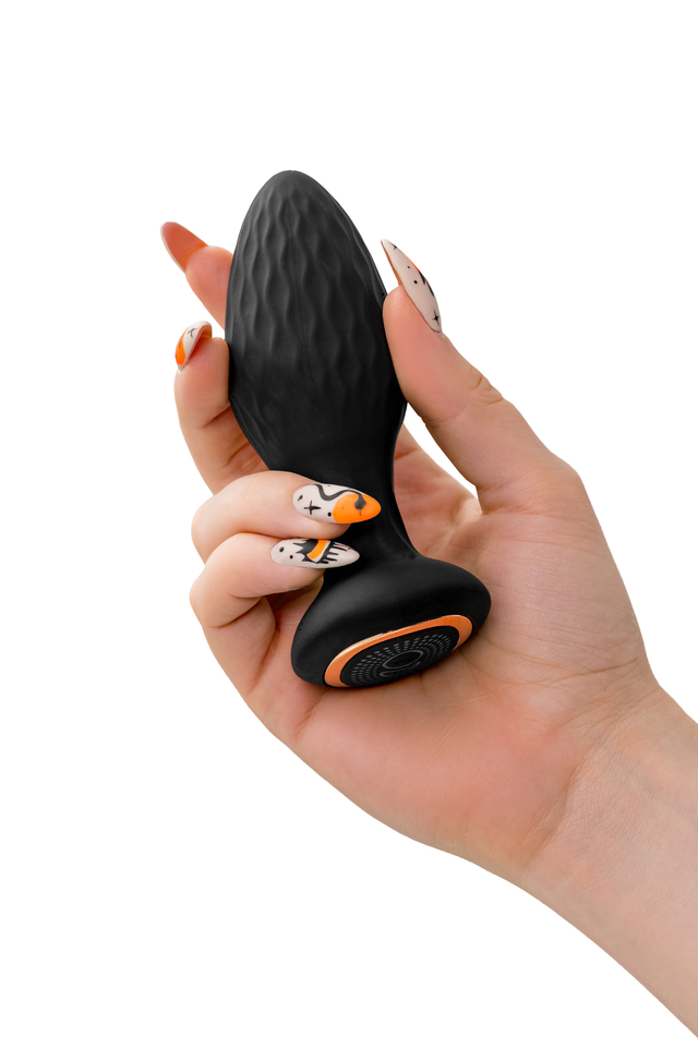 Вибровтулка с ротацией Tucana от Popo — это идеальное сочетание элегантности и инноваций, воплощенное в классической черной модели с уникальной текстурой. Поверхность игрушки украшена рельефом в виде многочисленных волн, что обеспечивает дополнительную стимуляцию и тактильное удовольствие при использовании. Изготовленная из премиального силикона, эта втулка приятна на ощупь, комфортна в использовании и полностью безопасна для тела. Игрушка создана для тех, кто хочет разнообразить интимные моменты и усилить ощущения. Благодаря 9 режимам ротации и вибрации, вы можете настроить её под свои предпочтения, а ротационные движения обеспечивают насыщенное чувство заполненности. Размеры и конструкция: Рабочая длина: 10 см — идеальная для комфортного и глубокого проникновения. Диаметр: 3,8 см, обеспечивающий баланс между комфортом и стимуляцией. Общая длина: 12 см. Наличие стоппера: важный элемент, который предотвращает слишком глубокое проникновение и делает использование безопасным. Кнопки включения и переключения режимов находятся в основании стоппера, что делает управление простым и удобным. Вы также можете передать управление партнеру через пульт дистанционного управления или с помощью приложения, что добавляет элемент игры и новых ощущений. Это делает игрушку идеальной для парных игр и создания непредсказуемых сценариев. Игрушка поддерживает перспективную функцию управления через Bluetooth, позволяя вам расширить границы возможностей. Приложение открывает доступ к дистанционному контролю, создавая новые сценарии интимных игр. Работа приложения осуществляется в тестовом режиме и может быть нестабильна. Приложение предлагает уникальный способ передать контроль своему партнеру, даже если вы находитесь на расстоянии. Tucana станет идеальной для тех, кто хочет испытать новые ощущения от анальной стимуляции, вне зависимости от опыта. Удобные размеры и наличие стоппера делают ее безопасной и комфортной для использования как новичками, так и опытными пользователями. Откройте новые грани удовольствия с Tucana от Popo — вибровтулкой, которая сочетает в себе технологичность, удобство и изысканный дизайн для максимального наслаждения. Основные характеристики: Режимы: 9 режимов ротации и 9 режимов вибрации для разнообразных ощущений. Цвет: элегантный черный с рельефной текстурой волн. Материал: премиальный силикон и ABS-пластик, гипоаллергенные и безопасные. Водонепроницаемость: IPX6 — подходит для использования в душе, защищена от сильных струй воды. Управление: кнопки на основании, пульт дистанционного управления или через приложение. Зарядка: магнитная, время зарядки — 2,5 часа. Время работы: до 50 минут.