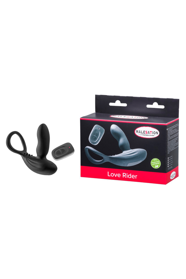 Стимулятор простаты с эрекционным кольцом Love Rider MALESATION – это мощное устройство для мужской стимуляции, созданное для глубокого удовольствия и максимального комфорта. Его эргономичный и креативный дизайн обеспечивает точную стимуляцию простаты и промежности, а дополнительное рельефное покрытие с мягкими шипами усиливает ощущения. Кольцо плотно охватывает мошонку (или мошонку и пенис вместе), что усиливает эффект и дарит длительные, интенсивные оргазмы. Втулка, анатомически изогнутая для точного попадания в зону простаты, делает процесс использования невероятно комфортным и эффективным. Устройство оснащено двумя мощными моторами, которые можно использовать как одновременно, так и по отдельности, регулируя их работу с помощью удобного пульта дистанционного управления. Вам доступны 11 функций вибрации для стимуляции простаты и промежности, что позволяет экспериментировать с различными режимами и находить идеальное сочетание для максимального удовольствия. Радиус действия пульта – до 5 метров, что открывает множество вариантов как для соло-игр, так и для игр с партнером. Love Rider MALESATION изготовлен из мягкого, безопасного силикона и АБС-пластика, что делает его приятным на ощупь и полностью гипоаллергенным. Водонепроницаемость позволяет использовать его не только в спальне, но и в душе. Устройство легко чистится, что обеспечивает гигиену и долговечность. Для работы стимулятора предусмотрен перезаряжаемый литиевый аккумулятор, который заряжается через USB-кабель. Полная зарядка занимает 3-4 часа и обеспечивает до 150 минут работы в зависимости от режима использования. Диаметр втулки составляет от 2,90 до 3,10 см, а диаметр кольца для мошонки – 4,80 см, что делает устройство подходящим для мужчин с разными анатомическими особенностями. Для более комфортного использования рекомендуется применять лубрикант на водной основе. Насладитесь безупречным сочетанием стимуляции и комфорта с Love Rider MALESATION. 11 режимов вибрации для стимуляции простаты и промежности. Два мощных мотора с независимым управлением. Кольцо для мошонки или пениса и мошонки для усиления эрекции. Водонепроницаемый, легко чистится. Изготовлен из мягкого, гипоаллергенного силикона. Управление с пульта на расстоянии до 5 метров. Время работы до 150 минут на одном заряде. В комплекте бархатный мешочек для хранения. Диаметр втулки: 2,90-3,10 см. Рекомендуется использовать лубрикант на водной основе.