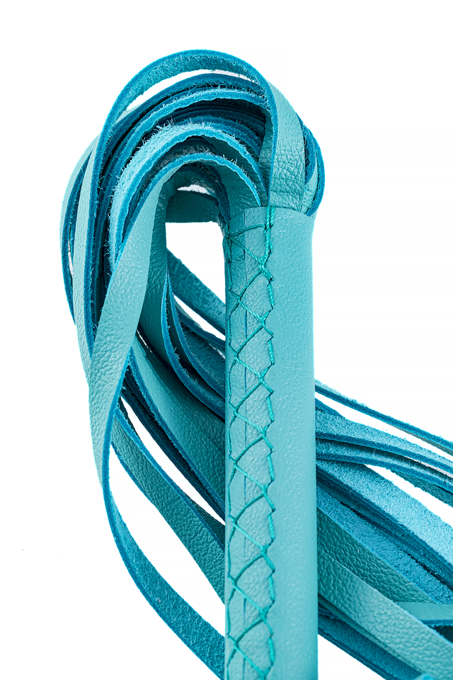 5131 Плеть Pecado BDSM, голубая рукоять, голубые хлысты, натуральная кожа