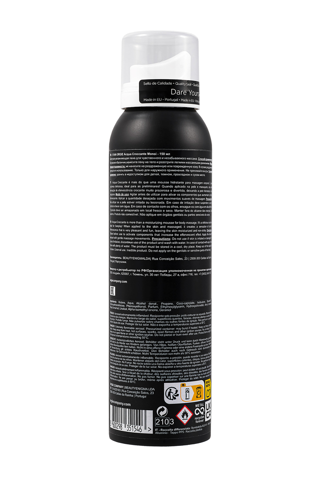 Ищете способ добавить искры в ваши отношения? Acqua Croccante Monoi от Orgie – это не просто увлажняющий мусс для массажа тела. Это волшебный эликсир, который превратит вашу прелюдию в незабываемое приключение! Acqua Croccante Monoi — это увлажняющая шипучая пена, которая дарит вашей коже нежность и заботу. “Хрустящий” массаж, который пробуждает ваши чувства и дарит незабываемые ощущения. Нелипкая формула, позволяющая наслаждаться близостью без дискомфорта. Представьте нежные прикосновения, скользящие по вашей коже. Сладкое искушение для двоих – восхитительный аромат масла манои на основе кокоса и цветков тиаре, заполняющий воздух и будоражащий сознание. Acqua Croccante Monoi — это ключ к миру чувственных наслаждений. Подарите себе и своему партнеру незабываемые мгновения близости и страсти! Способ применения: Встряхните флакон, чтобы активировать шипучий эффект. Нанесите необходимое количество мусса на кожу легкими массажными движениями. Наслаждайтесь моментом! Orgie — это не просто бренд интимной косметики, это бразильский гимн любви и наслаждению. Продукция Orgie, созданная с использованием натуральных афродизиаков и инновационных формул, пробуждает чувственность и дарит незабываемые ощущения как в интимной близости с партнером, так и в сольном путешествии к самопознанию. Orgie — это философия, призывающая ценить и исследовать все грани интимности, делая каждый момент незабываемым.